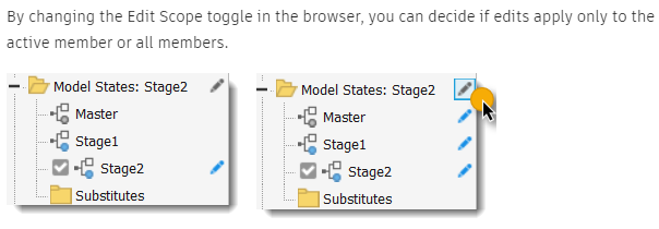Because we have a lot of iLogic rules that might be affected I also discussed this on the "Inventor iLogic and VB.net Forum". We came to the conclusion that I need to check/update all rules manually. But WCrihfield pointed me to an undocumented helper class. The class also sets the member edit scope to all members but it changes it back when you are finished. You might want to have a look at it if you don't like it when your iLogic rule changes the edit scope in your model. But still, need all changes in your iLogic rule to affect all member states. It works like this: