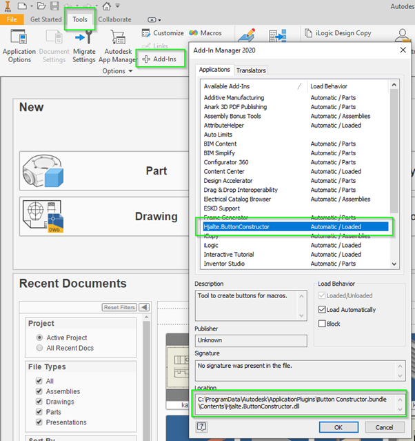 | All Users, Version Dependent | %ALLUSERSPROFILE%\Autodesk\Inventor 20xx\Addins\ |
