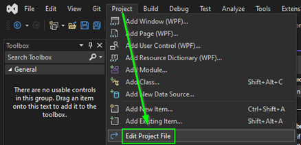 When your addin is compiled then in needs to be installed so Inventor can use it. Go to the “Project Properties”.